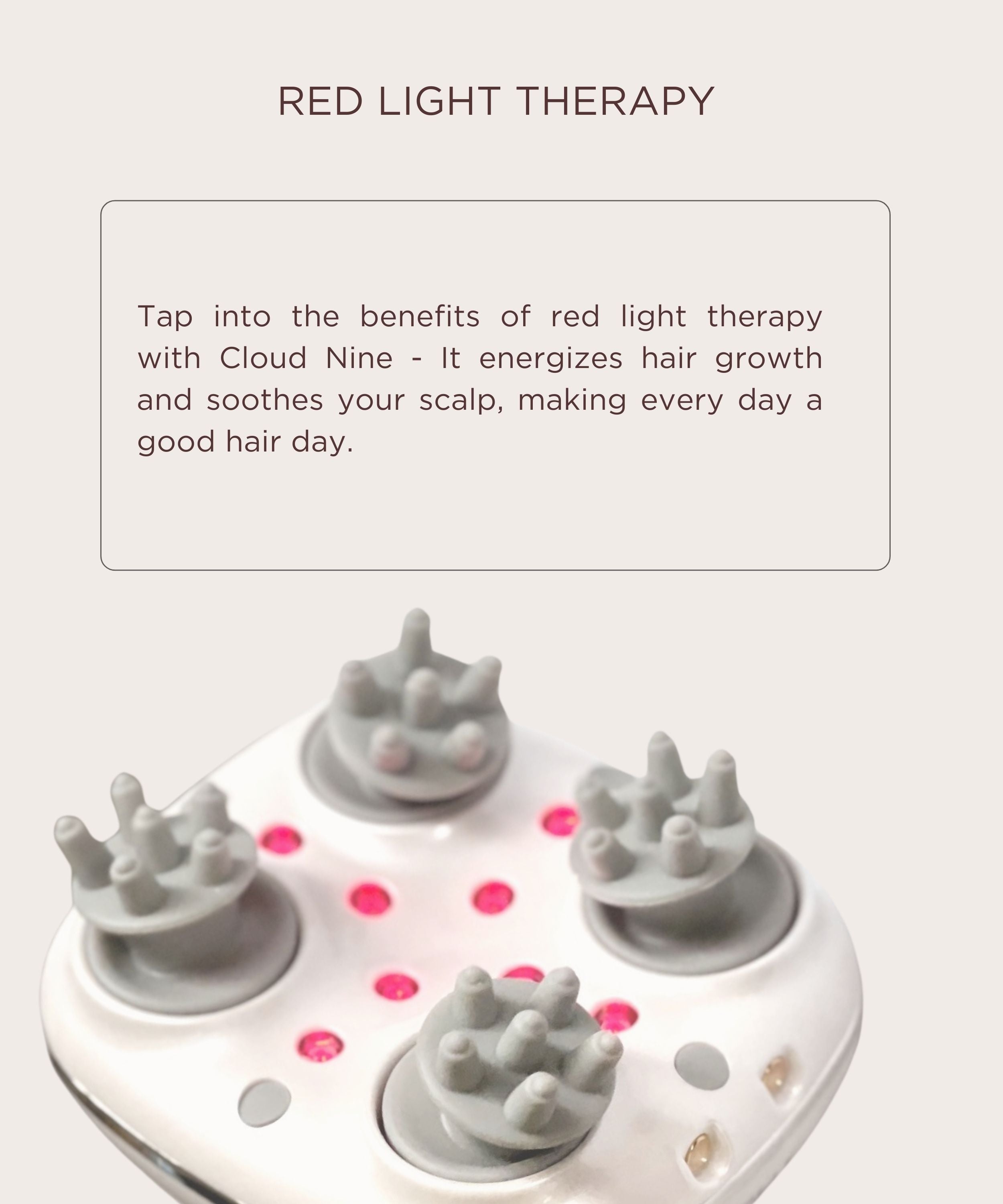 It feels like a ritual, works like a treatment. Cloud 9 combines red light therapy, gentle vibration, and rotating prongs to deliver a scalp massage that’s equal parts restorative and results-driven. Combines massage and light care to help scalp feel relaxed and hair look stronger.