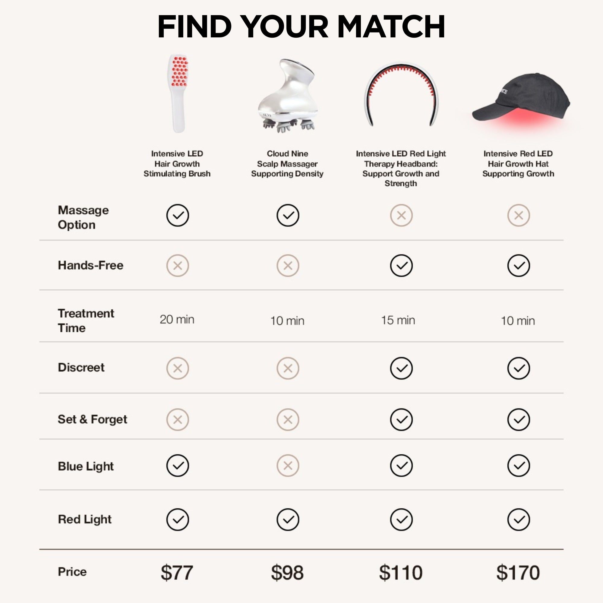 - Science-backed technology for stronger, healthier hair—right from home