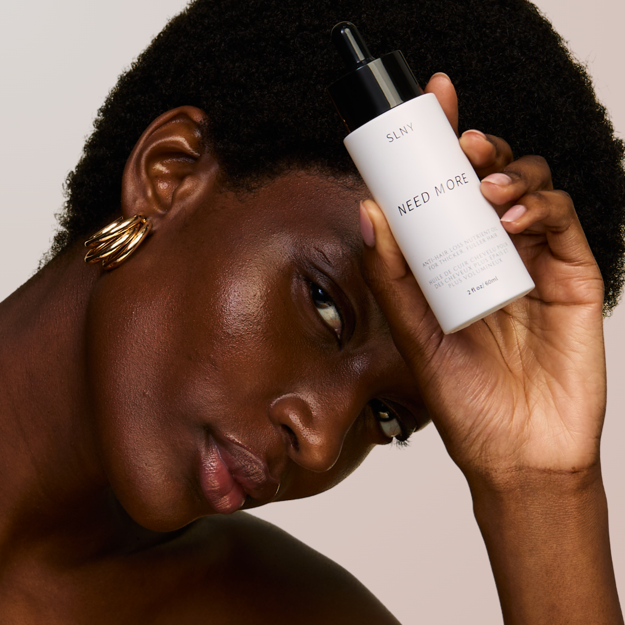 The brush uses red and blue LED light with massaging prongs to stimulate the scalp and increase circulation, creating the perfect environment for healthier hair growth. The serum nourishes the scalp—apply it 20 minutes before your shower for deep absorption.