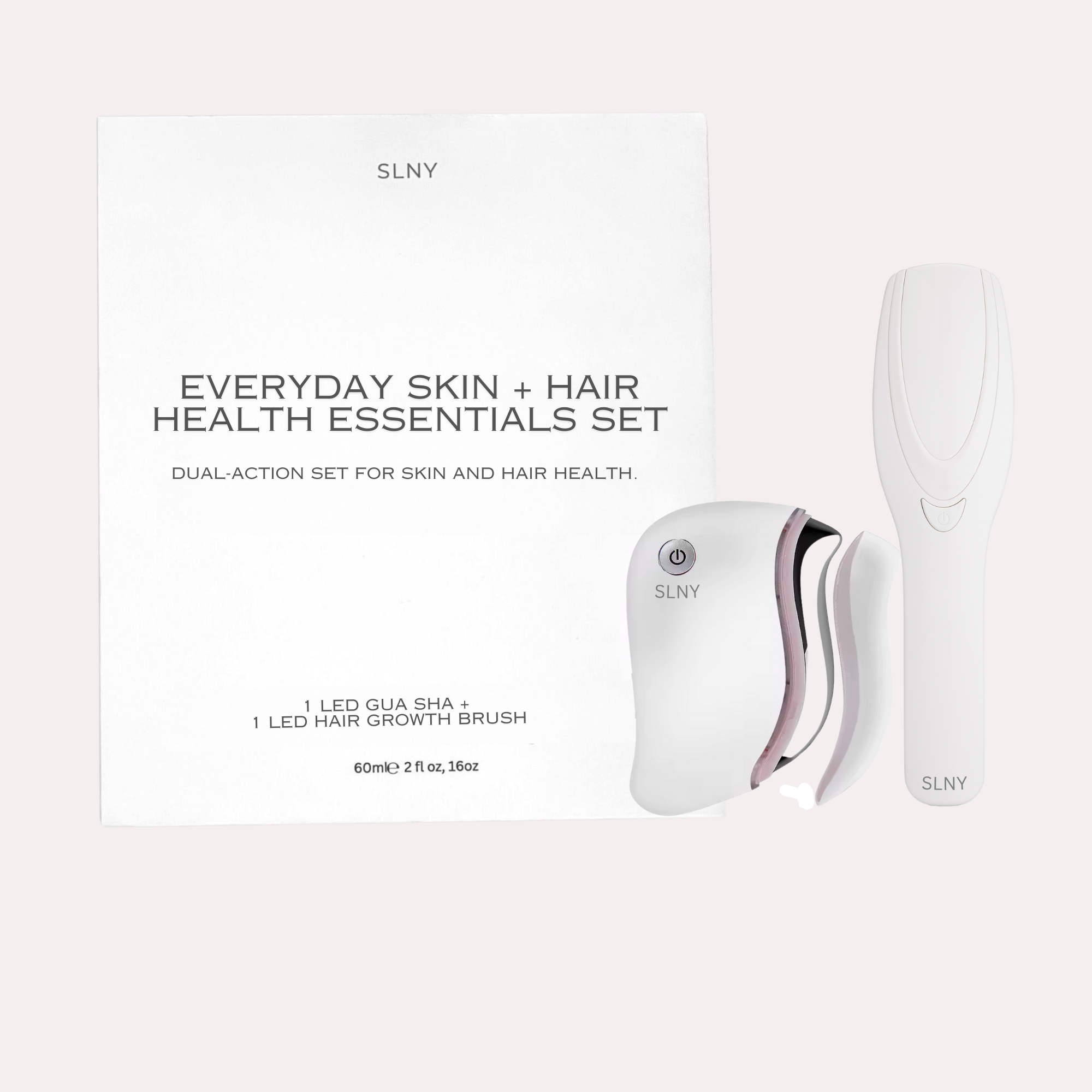 The set combines professional-grade skincare and haircare in a sleek, effective design. Achieve thicker, healthier hair and smoother, rejuvenated skin with just minutes of use.