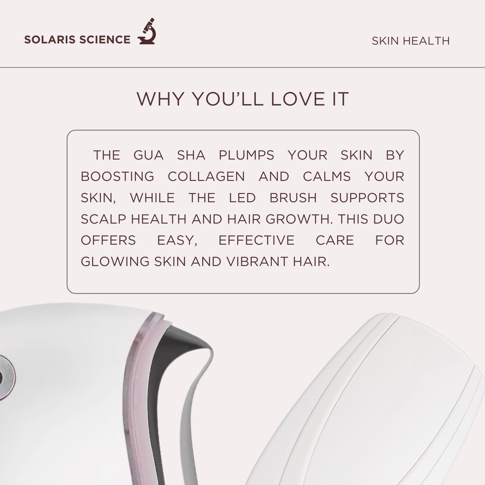 This medical-grade set is designed to enhance your natural beauty. The brush boosts hair thickness and promotes a healthy scalp, while the gua sha reduces puffiness and improves skin elasticity. Perfect for those seeking stronger hair and a smoother, rejuvenated complexion, this set delivers visible results with minimal effort, effortlessly fitting into your daily routine.
